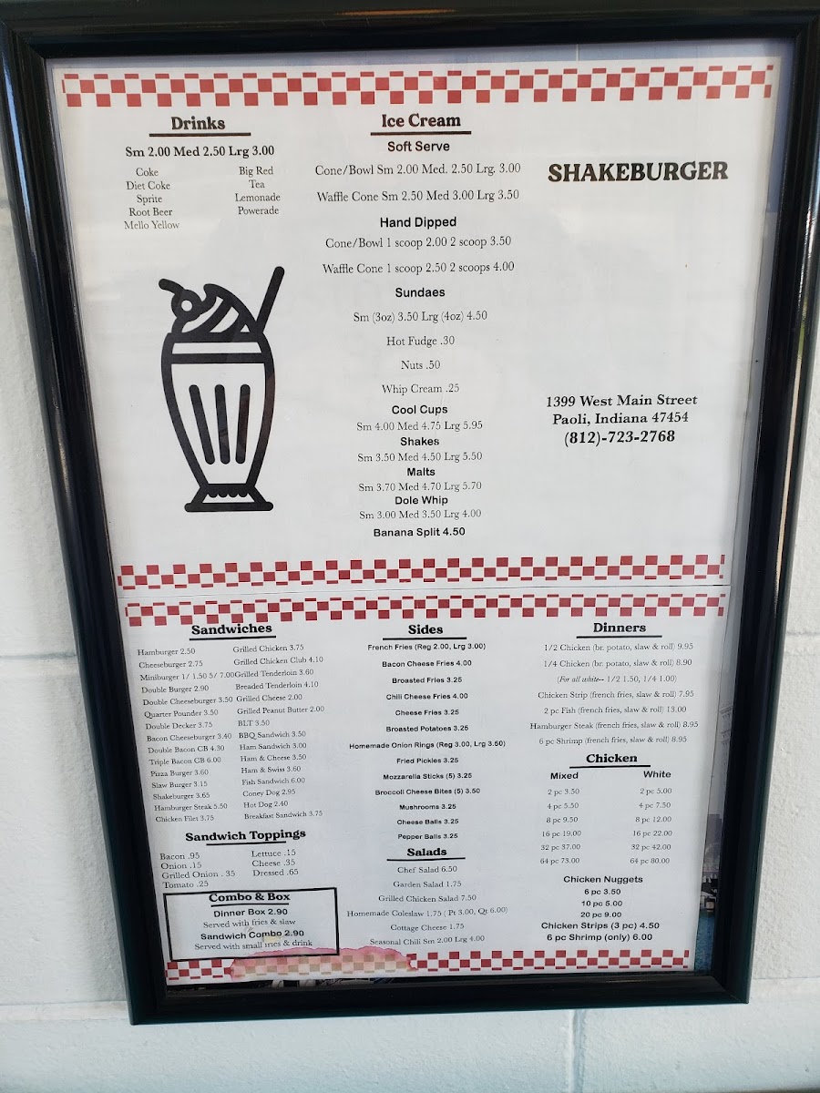 If you’re craving a classic American burger, Shakeburger Drive-In Menu has you covered. Located at 1399 W Main St in Paoli, IN, this charming drive-in offers a menu packed with mouthwatering options. From juicy burgers and crispy fries to creamy milkshakes, every item is crafted to satisfy your comfort food cravings. You can’t go wrong with their signature burgers, which are cooked to perfection and paired with your choice of fresh toppings. Whether you’re in the mood for a hearty meal or a sweet treat, Shakeburger Drive-In ensures a delicious experience with every bite. Plus, their convenient drive-in service makes it easy to enjoy a tasty meal on the go!